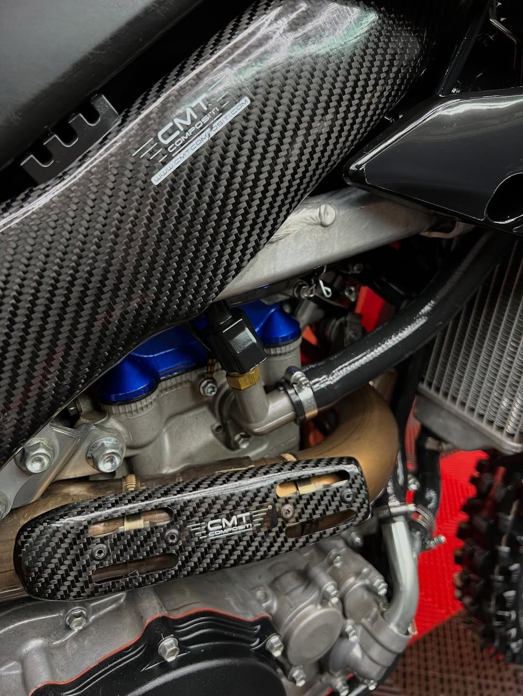 Covered in CMT Compositi Parts Such As Frame Guards, Ignition Cover, Exhaust Guard, Disc Cover, Sprocket Cover, Rear Caliper Cover